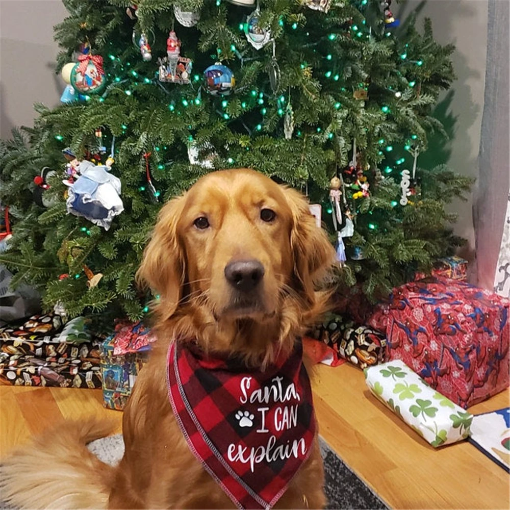 - Cão personalizado bandana santa eu posso explicar buffalo xadrez vermelho preto acessórios para cães