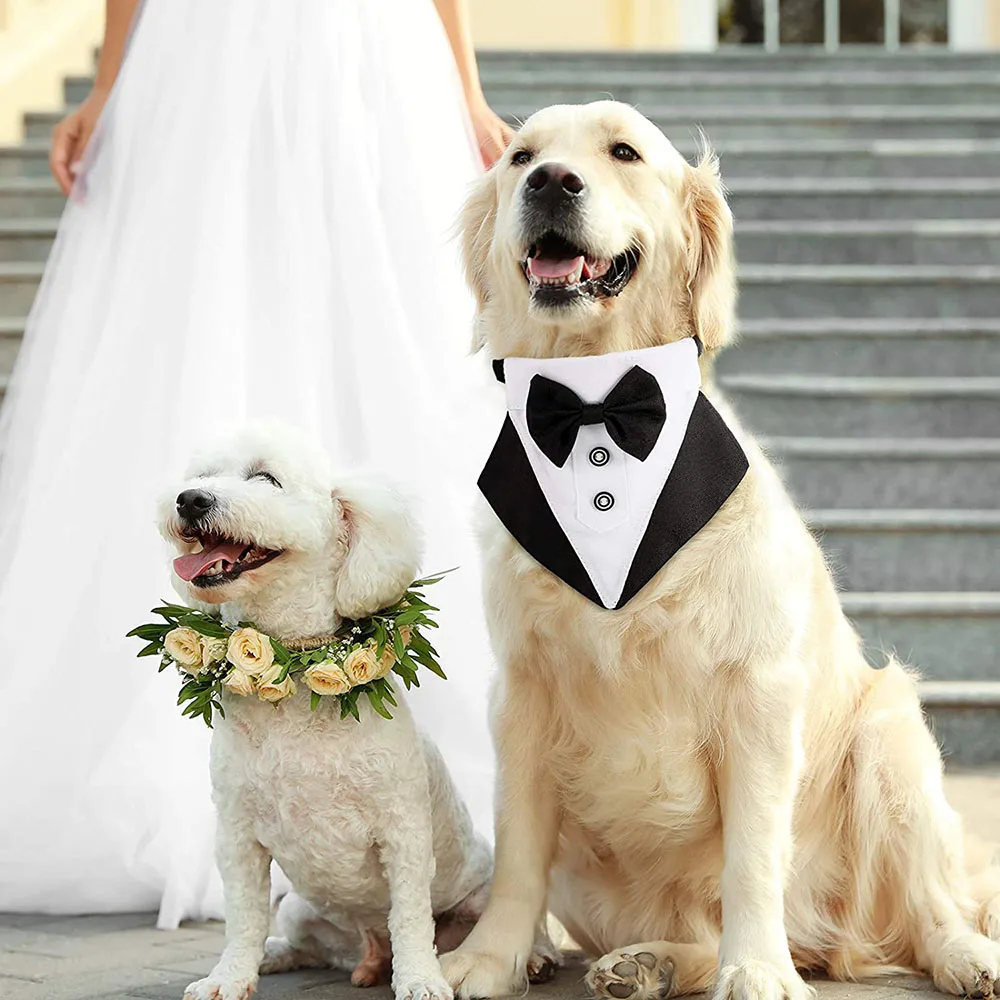 - Cão smoking bandana colar pet casamento laço cachecol ajustável neckerchief bowtie collar preto pet formal traje para filhote de cachorro