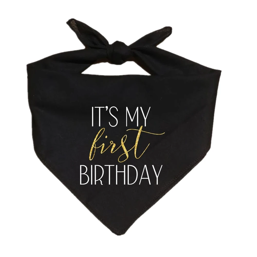 - Bandana personalizada de aniversário de cachorro, com glitter dourado, “esse é minha primeiro aniversário”, opções de cores, acessórios pretos para cães, acessórios para animais de estimação